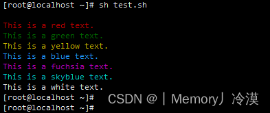 # 字体颜色:30m-37m 黑、红、绿、黄、蓝、紫、青、白