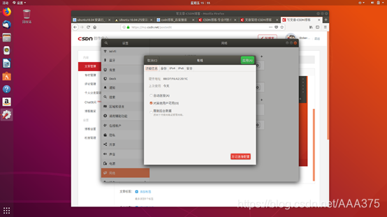 (1)打开连接。进入网络连接单击桌面右上角面板上的网络配置的图标,选中“编辑连接”。