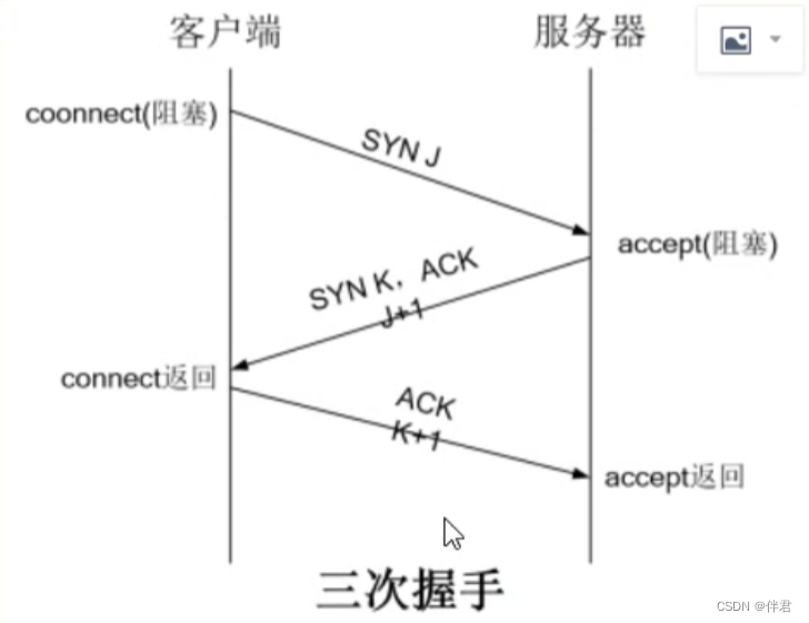 阻塞等待客户端的连接请求accept()(阻塞函数)