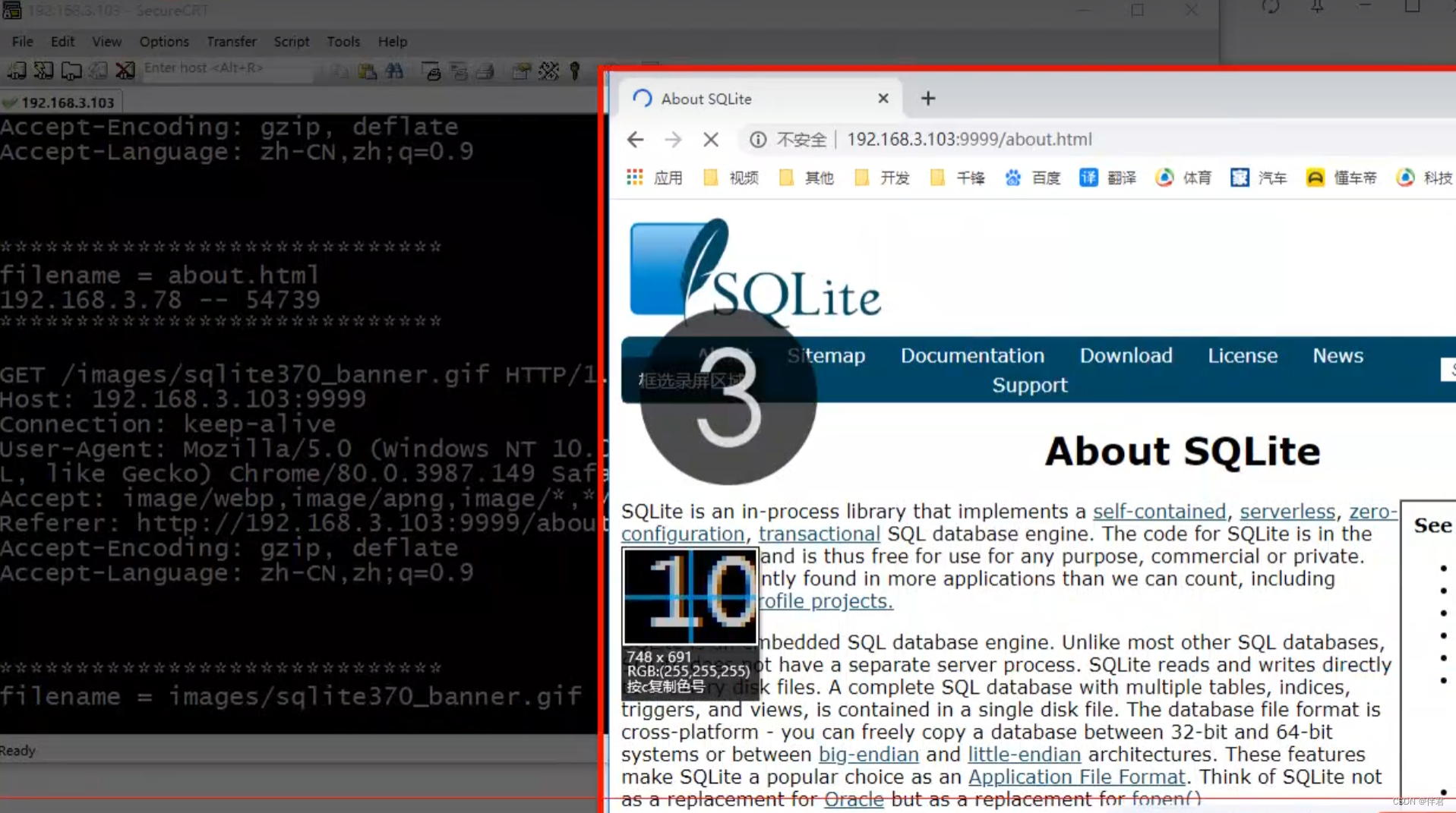 Web服务器的ip地址是192.168.3.103,端口号是9999,要访问的网页时about.html