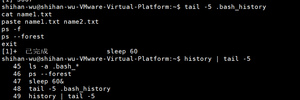|history 命令|查看、复用命令历史,通过参数控制显示数量、重复执行等|history、history 5、!2 等|