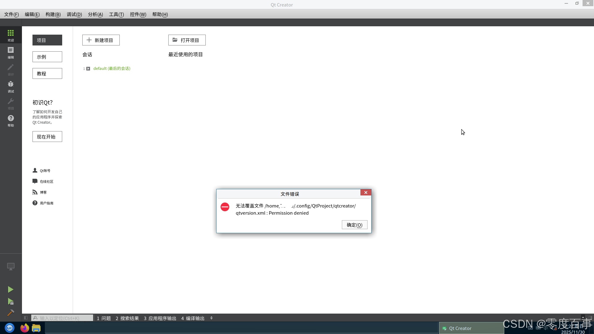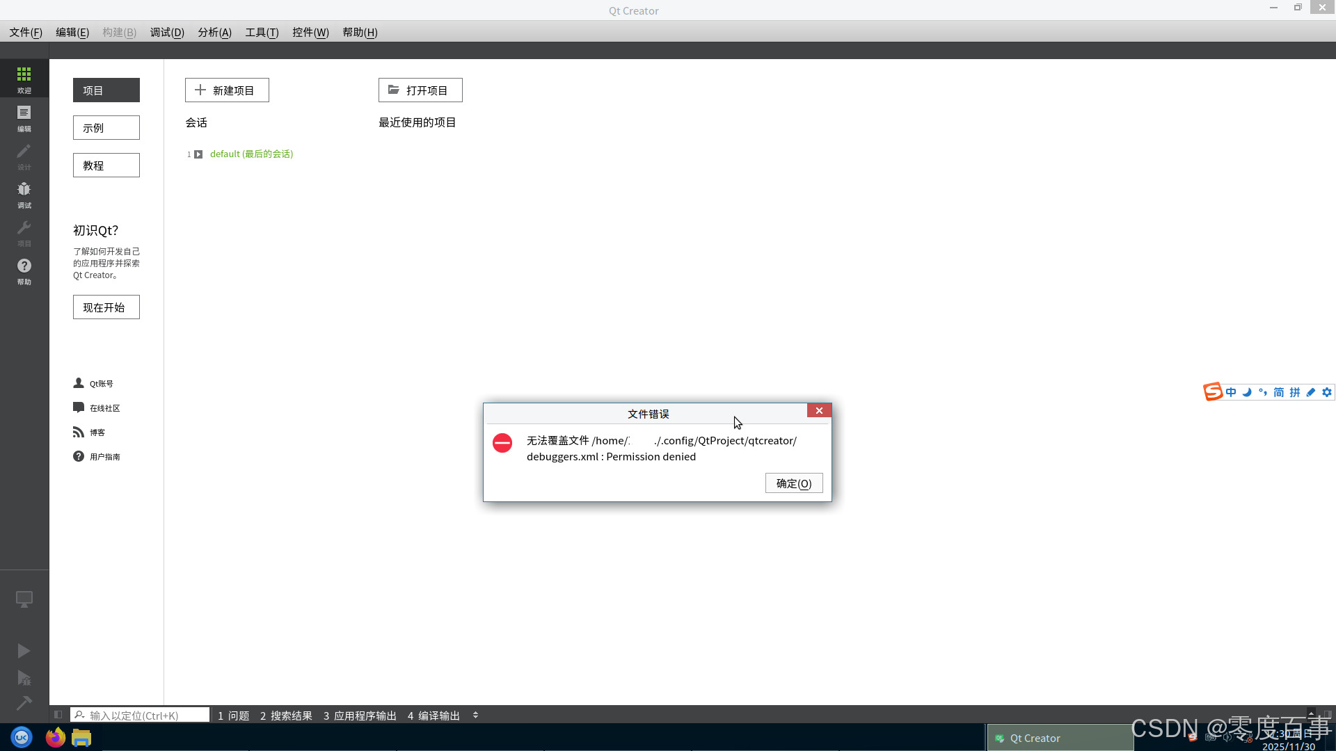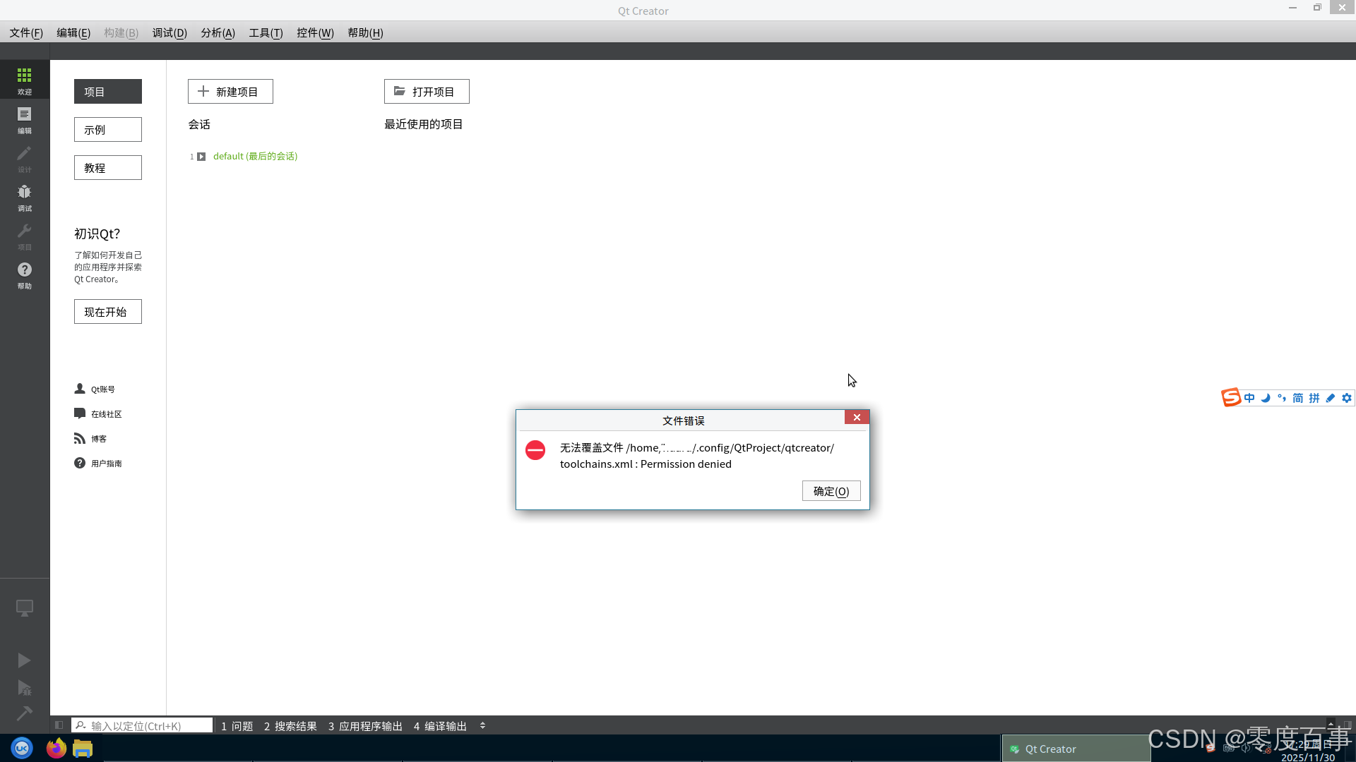 银河麒麟系统下使用QtCreator进行开发过程中遇到QtCreator频繁弹窗报错的问题,以root用户权限启动QtCreator后问题即可解决