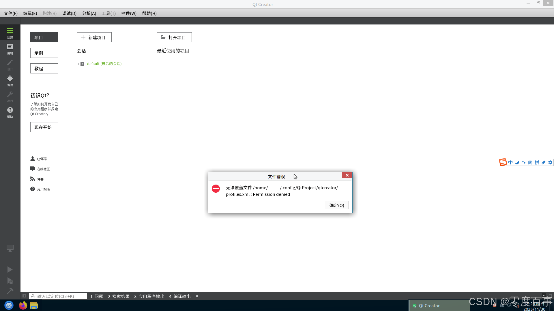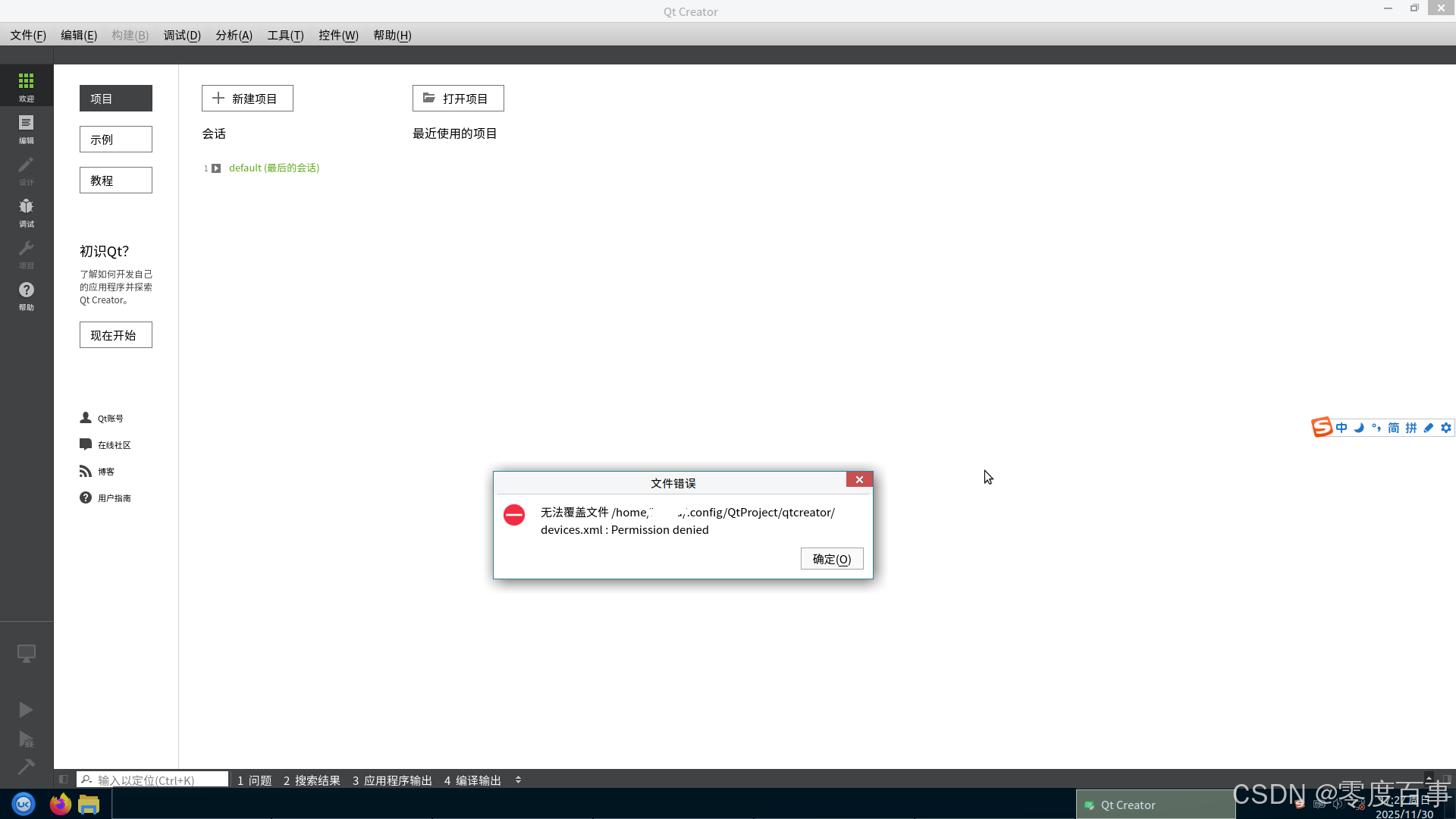 .../qtcreator/devices.xml:Permission denied