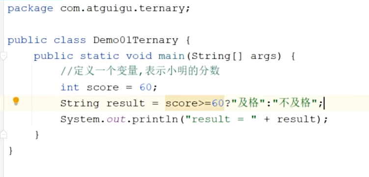 练习:小明出成绩了,小明的分数是否及格,返回结果