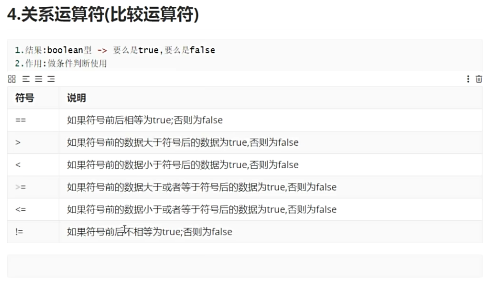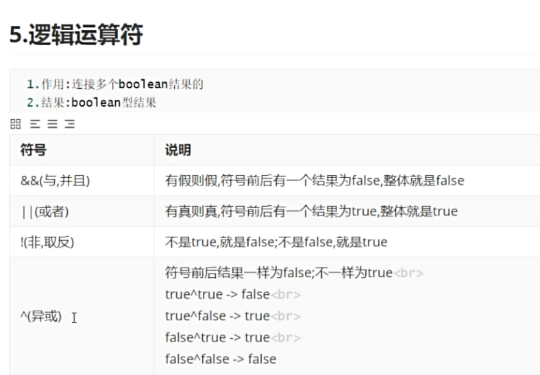 | || | 1.双或,有真则真,但是有短路效果,如果符号前为true,符号后的判断就不会执行了 |