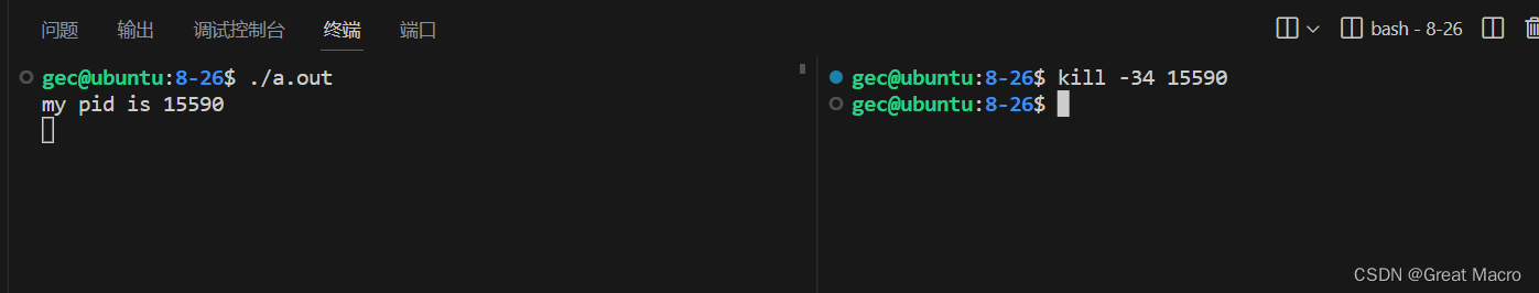 // kill()函数接口介绍 #include <sys/types.h> #include <signal.h> int kill(pid_t pid, int sig); 参数: pid: 要接收信号的进程号 sig: 信号的编号 返回值:成功返回0, 失败返回-1.