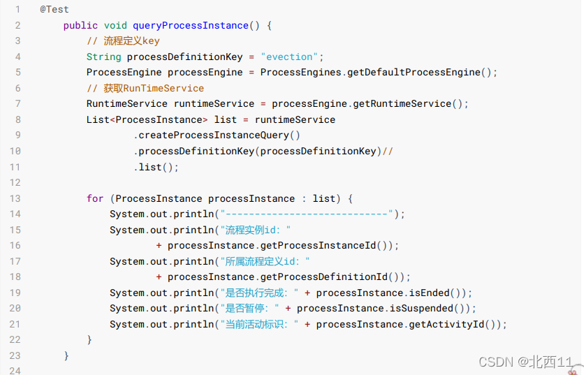 流程在运行过程中可以查询流程实例的状态,当前运行结点等信息。