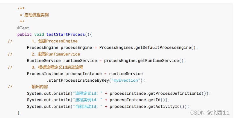 什么是流程实例 流程实例(ProcessInstance)代表流程定义的执行实例。 一个流程实例包括了所有的运行节点。我们可以利用这个对象来了解当前流程实例的进度等信息。 例如:用户或程序按照流程定义内容发起一个流程,这就是一个流程实例。