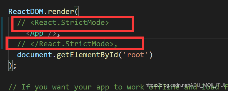找到index.js 果然默认是严格模式,删除<React.StrictMode>标签,关闭严格模式,警告自然消除了