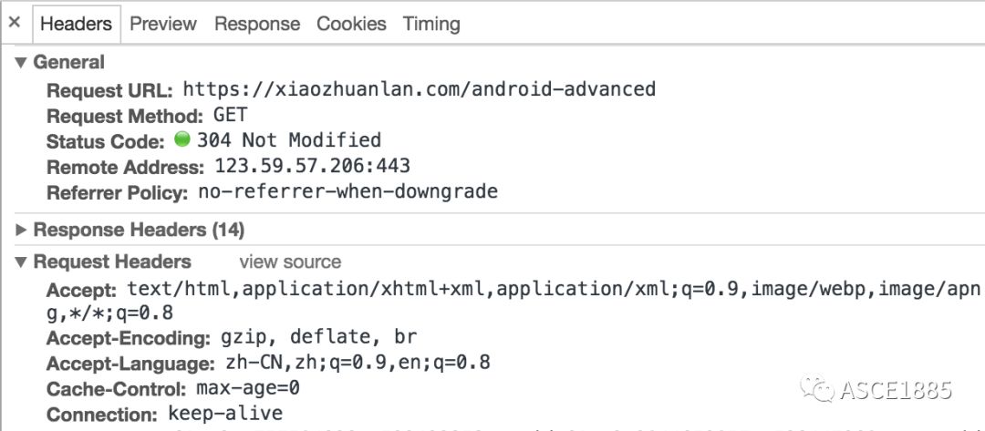比如在 chrome 中使用开发者工具可以看到本专栏的 HTTPS 请求头信息如下所示:
