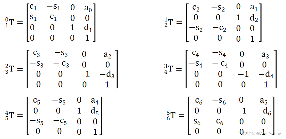 %%相邻连杆的 4X4 齐次变换矩阵%%