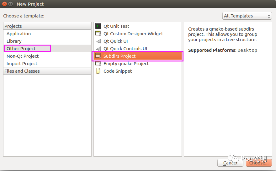 在Qt新建工程时,选择创建子工程,如下图。