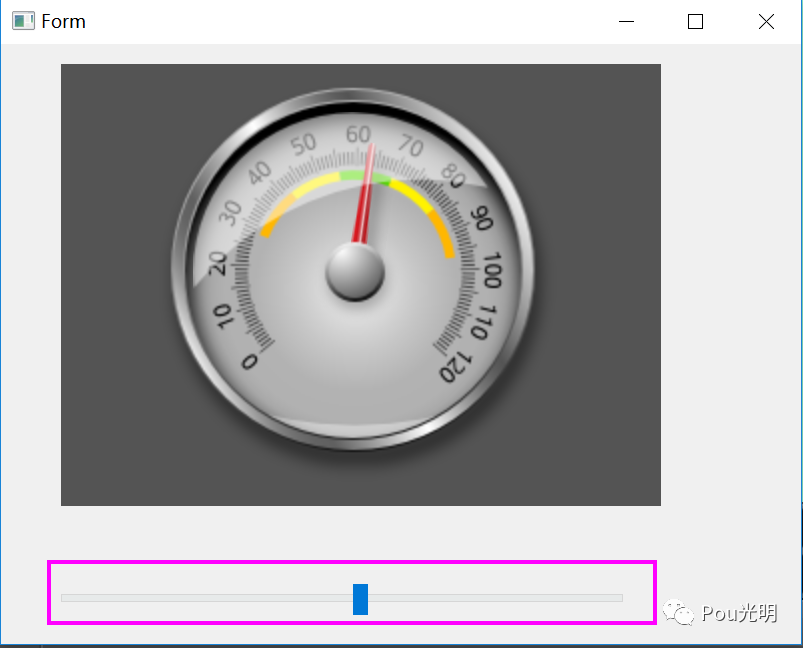 Demo总体概述:通过Widget上的Slider控制Qml中的拨码盘刻度指向,实现了Qml与Widget通信。