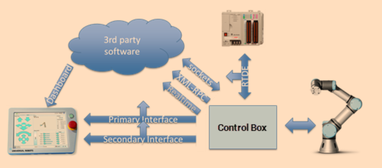 对于机械手的控制而言,一般是①直接示教器控制②sdk api控制③总线从站控制。以UR机械手为研究示例: