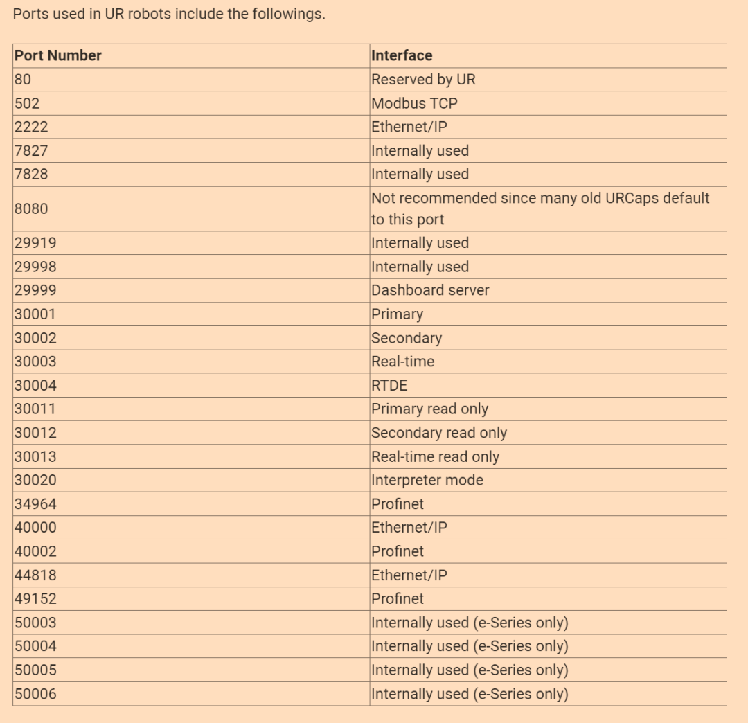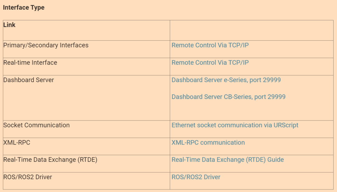 RTDE 旨在作为实时接口的强大替代方案。这使得 UR 控制器能够传输自定义状态数据,并接受自定义设定点和寄存器数据。有关端口和更新的信息,请参阅此文章:通过 TCP/IP 进行远程控制 – 16496