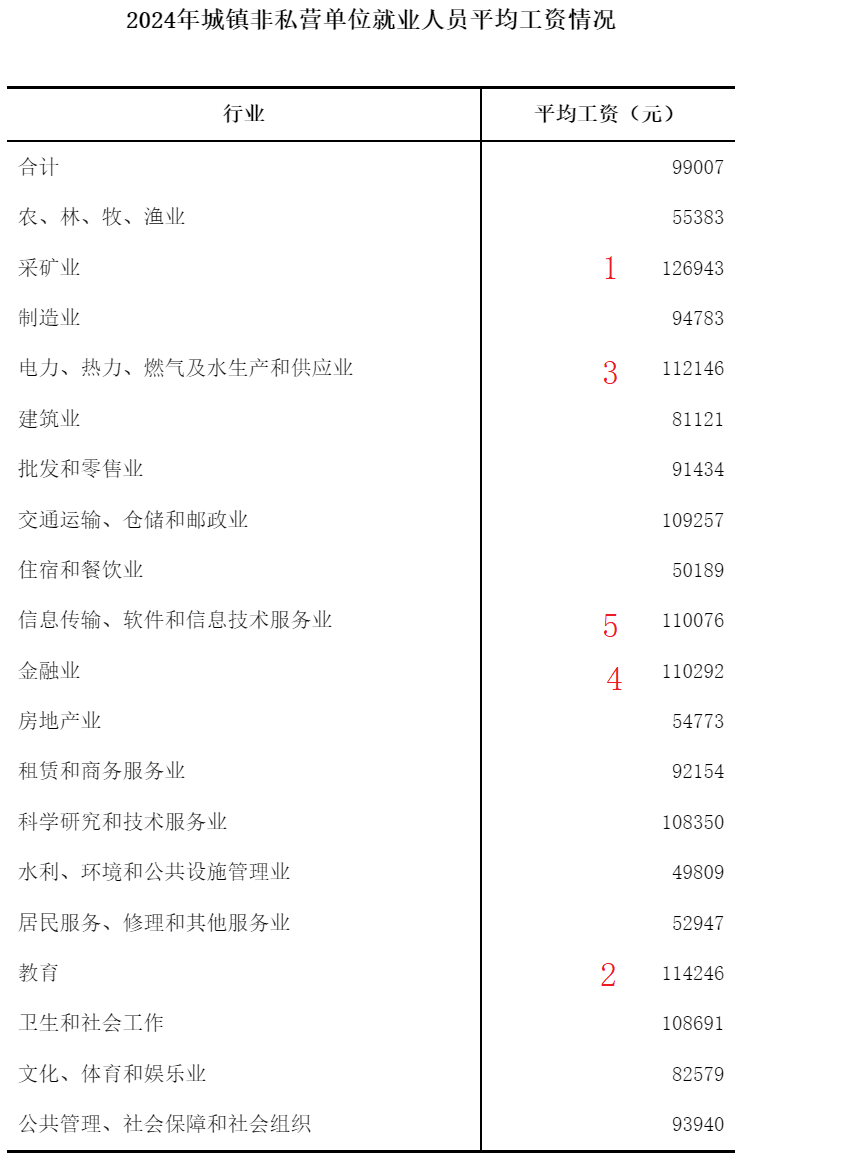 2024年城镇单位分行业门类就业人员年平均工资(20250619)