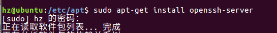 使用 sudo apt-get install openssh-server指令安装SSH客户端和服务端