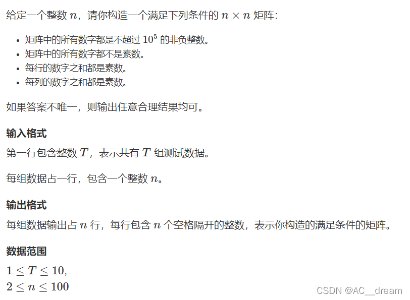 思路:这道题目是找规律的题目,我们只需要每行每列填2个1就可以了,构造方式随意