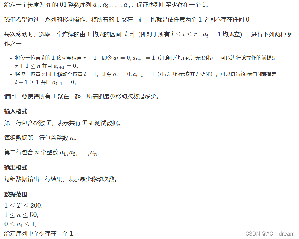 思路:我们直接对原序列进行模拟,从左往右每次遇到1就将其合并,直到所有的1连在一起