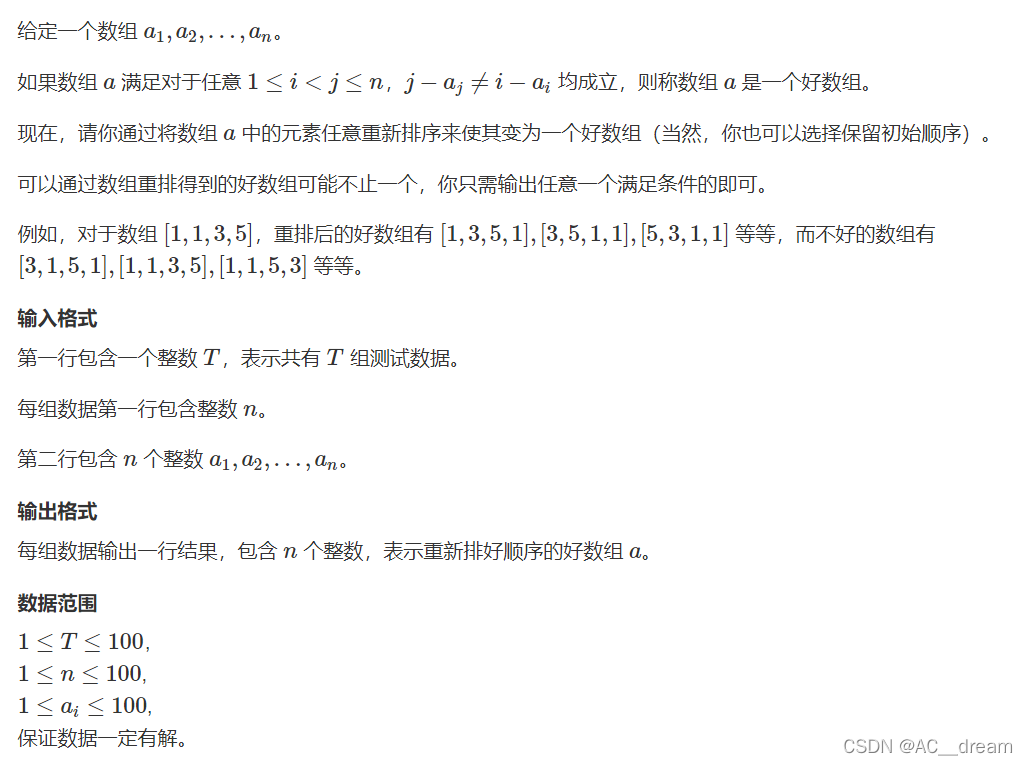 思路:由于坐标是依次增加的,那我们只要使得数组里面的数依次减少就可以使得对于任意 1≤i<j≤n,j−a[j]≠i−a[j] 均成立