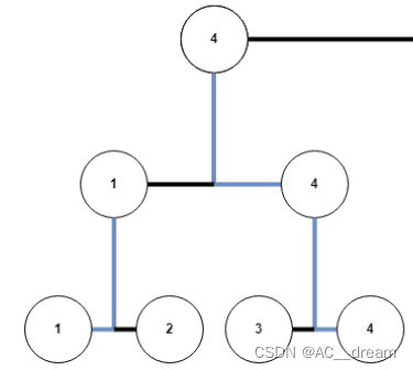 分析:首先我们能够发现第一轮比赛进行了2^(n-1)次,第二轮进行了2^(n-2)次,以此类推,最后进行2^(n-n)次,那么所有的比赛一共进行(2^n)-1次,而我们的询问次数大概是总比赛次数的2/3,也就是说我们能不能通过2次询问结果来得到原来三次询问结果所得到的结果,当然这么说有点抽象,举个简单的例子(就拿图中的例子吧,懒了p了就这样看吧)