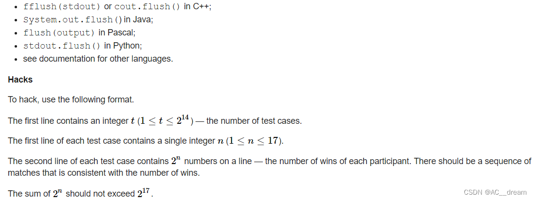 题意:先来介绍一下锦标赛规则:有2^n个参赛选手进行比赛,总共分n轮比赛,每次比赛都会筛选掉一半的人,比如一开始1和2比较,若1赢了,则1晋级,2退出,每一轮比赛都是一半参赛选手晋级,另一半参赛选手退出,退出的参赛选手将不参与后续比赛,现在我们可以进行询问,对于每次询问我们可以给定两个数a和b,如果参赛选手a赢的场次多于b,那么返回1,如果参赛选手b赢的场次多于a,那么返回2,如果两个参赛选手赢的场次一样多就返回0.现在我们进行询问,询问次数不得超过