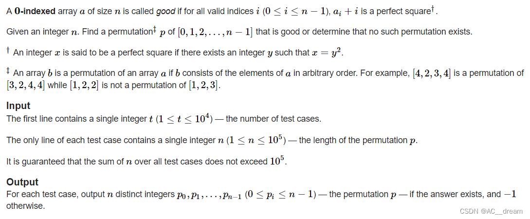 题意:先给定一个n代表数组元素的长度,数组的下标是从0~n-1,接下来输入n个数a[0~n-1],问能不能构造0~n-1的一个排列数组b[0~n-1]使得对于任意的0<=i<n均有a[i]+b[i]是一个完全平方数,如果没有输出-1,有的话就输出排列。