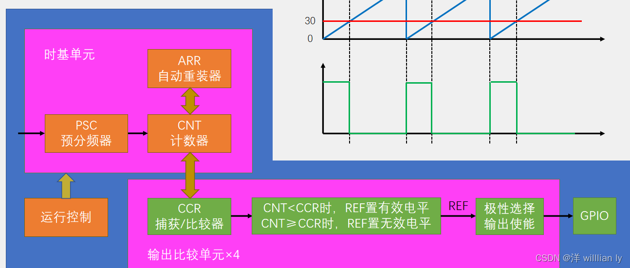 向下计数:CNT>CCR时,REF置无效电平,CNT≤CCR时,REF置有效电平