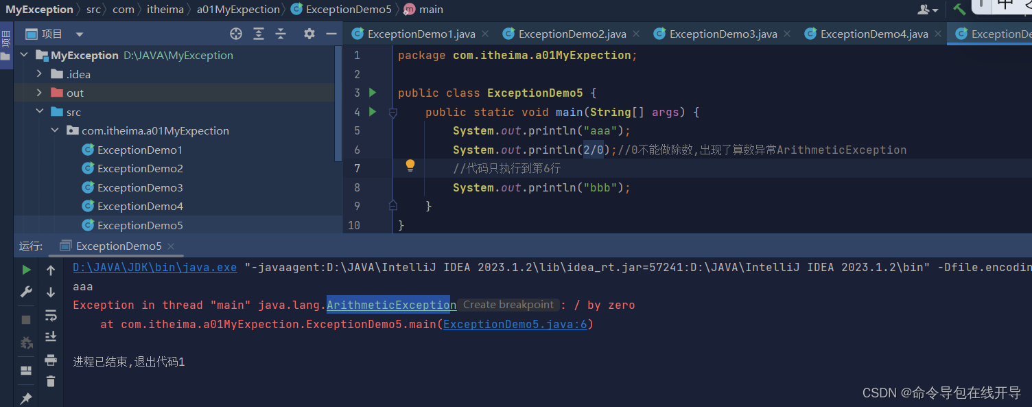 把异常的名称,异常的原因以及异常出现的位置等信息输出在了控制台。