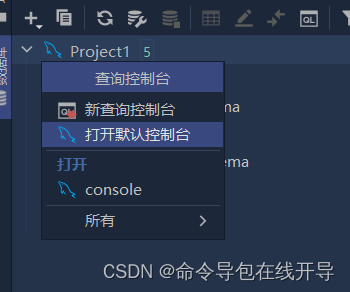 步骤:点左上角加(+)号下面的那一条->导航->跳转到查询控制台->打开默认控制台/下面还有别的控制台。