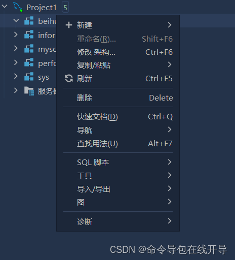 法二:点击要删除的数据库->删除(英译为Drop)即可
