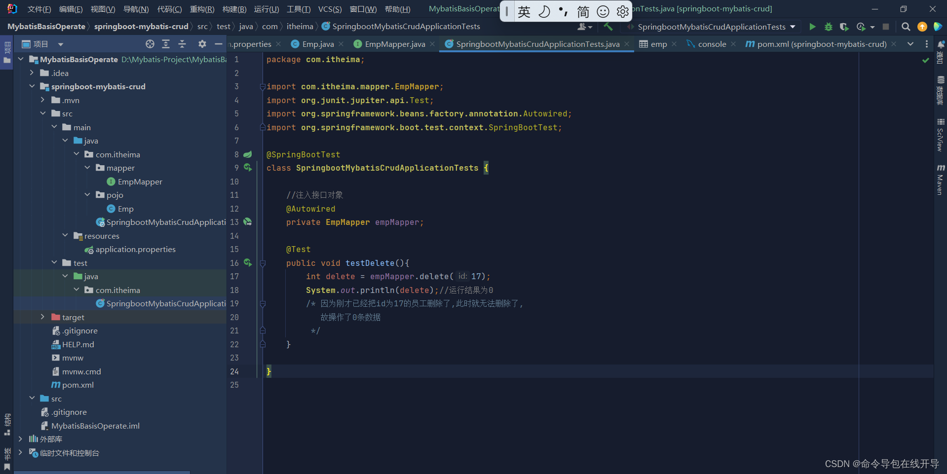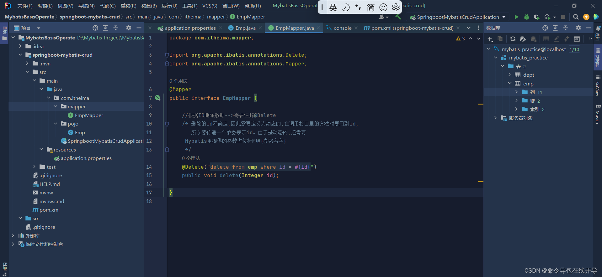 a. EmpMapper接口里的delete方法有返回值时:源代码