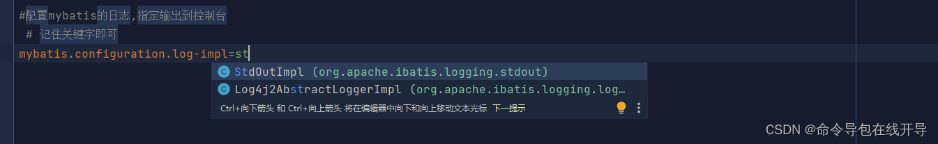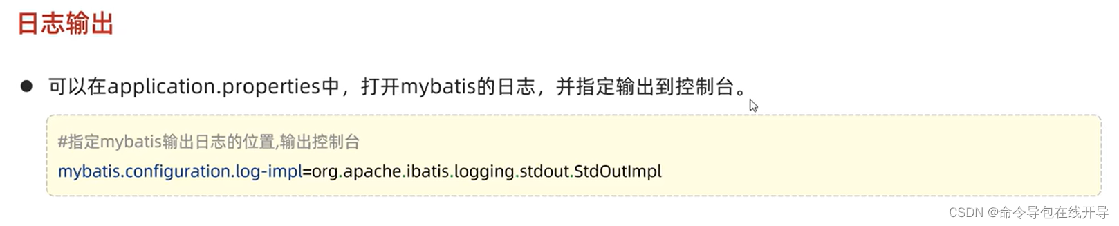 mybatis.configuration.log-impl=org.apache.ibatis.logging.stdout.StdOutImpl