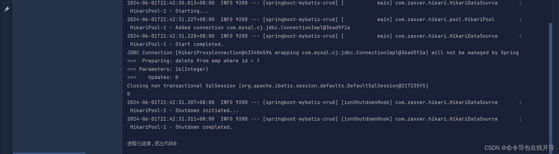 如果删除id为16的员工的话,delete结果为1,因为刚才没删除id为16的员工