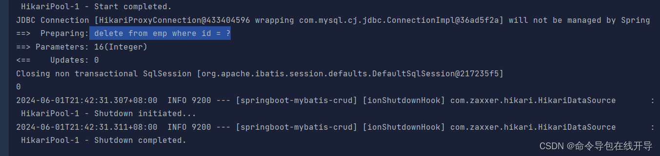public int delete(Integer id); //有返回值时代表一共操作了几条记录