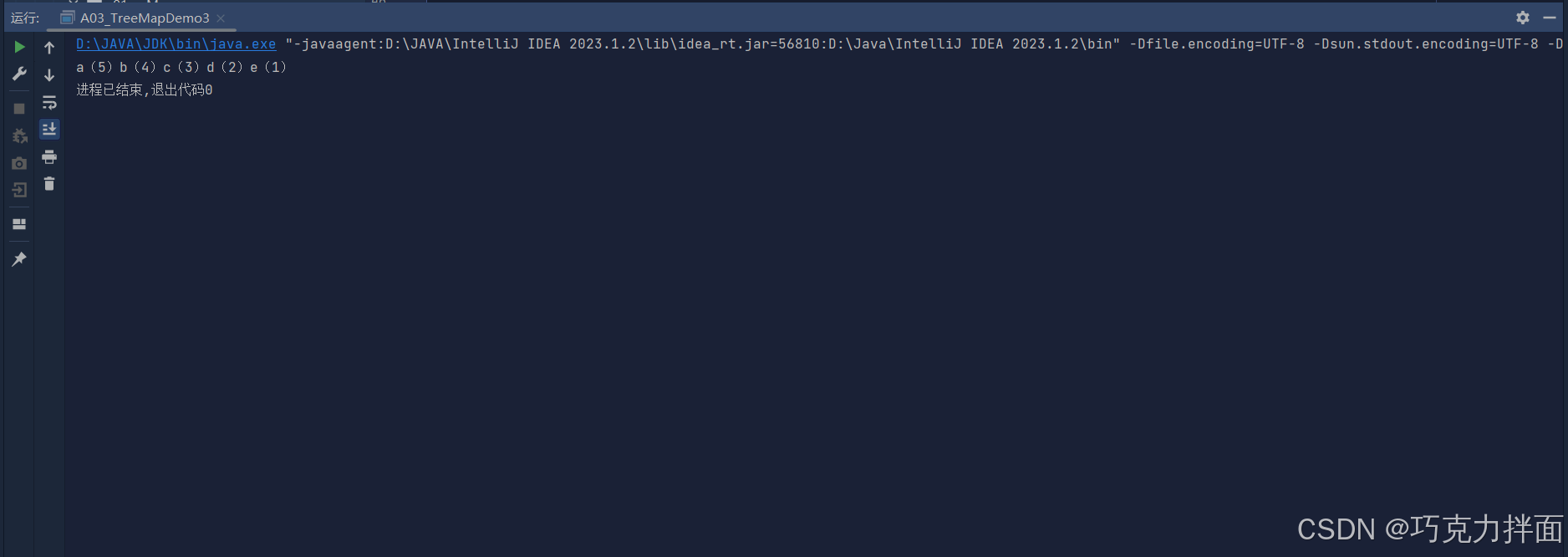 System.out.println(tm);//运行结果为{a=5, b=4, c=3, d=2, e=1}