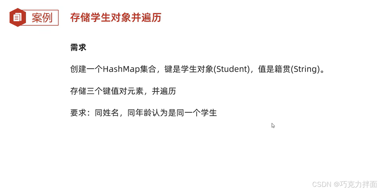 //1.创建HashMap集合,其中Student代表学生对象,String存储对应的籍贯