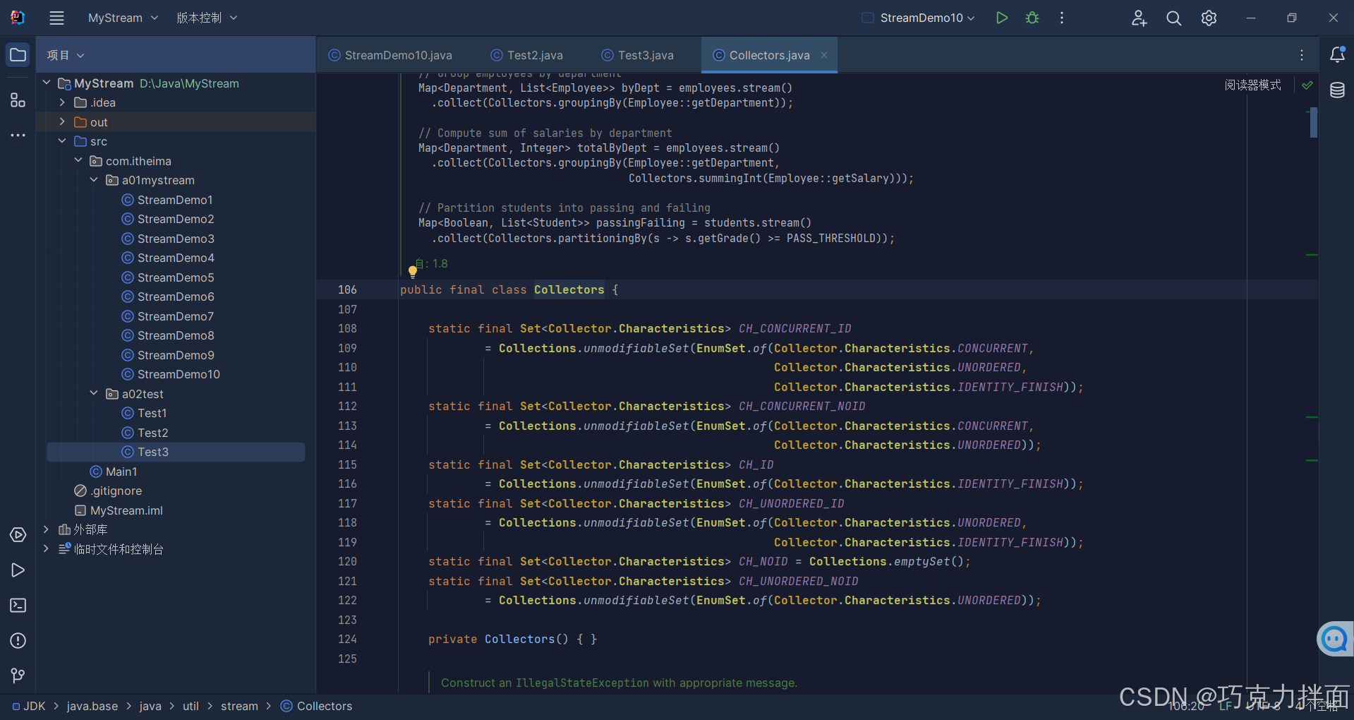 收集方法collect可以收集流中的数据,大多放到单列集合和双列集合中(单列集合包括List集合、Set集合,双列集合包括Map集合)。