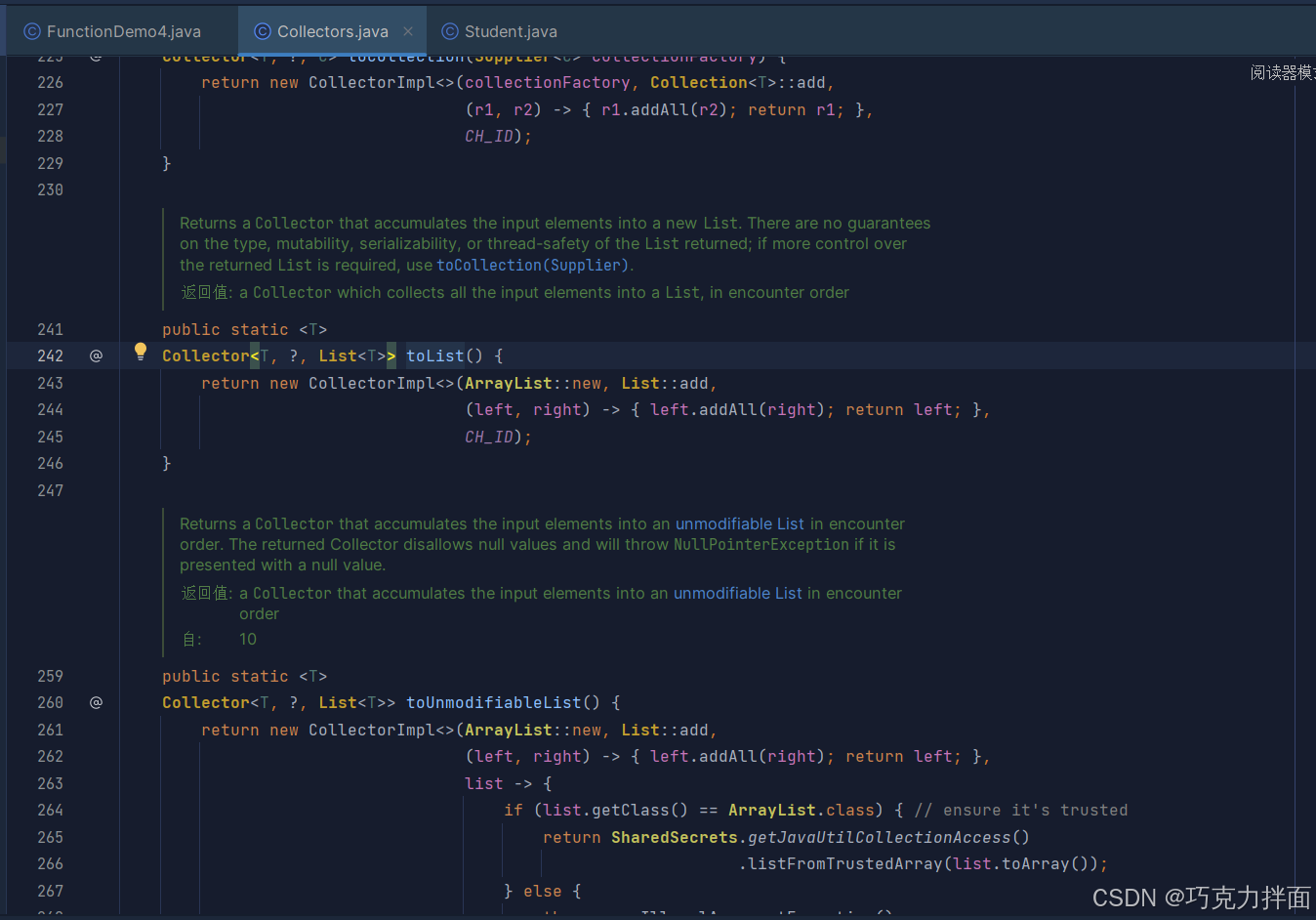 三.对于Stream流里的工具类Collectors,其中的toList方法: