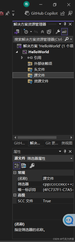 步骤十一:开始书写自己的代码,找到右侧的"源文件",以后写的所有代码都要放到"源文件"这个文件夹里