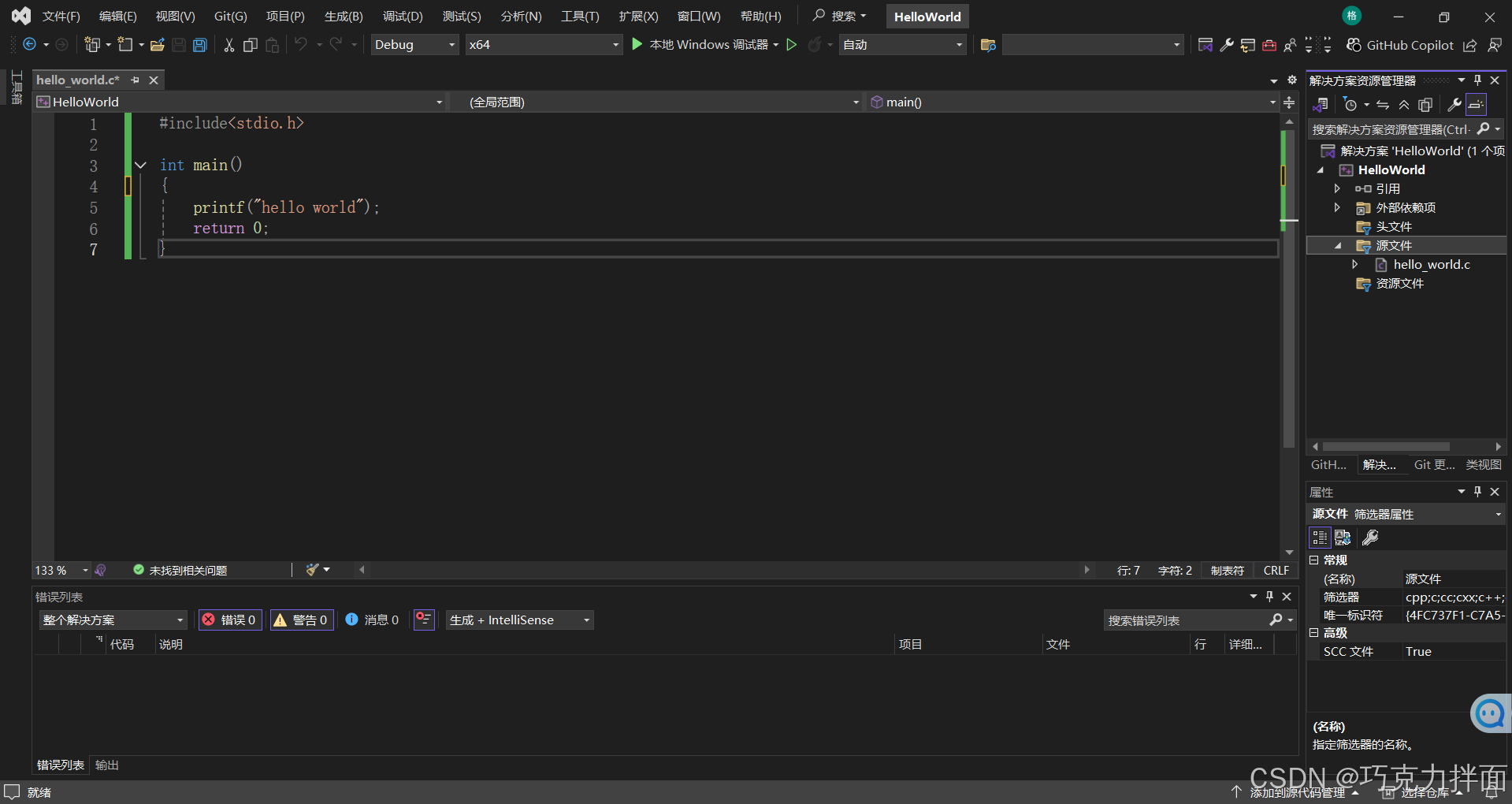 步骤一:创建文件->hello_world.c,其中hello_world是文件名,文件名符合命名规则和见名知意即可;.c是后缀名,因为是C语言的代码