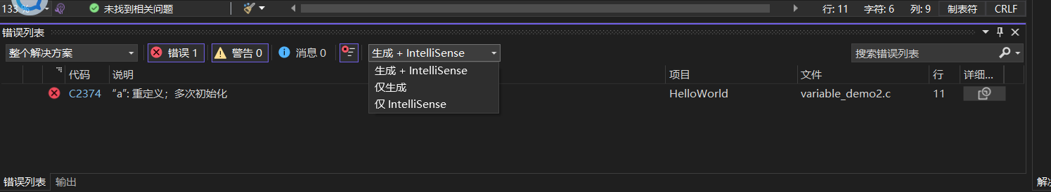 上述图片中下方可选择"生成+IntelliSence"、"仅生成"和"仅IntelliSence",