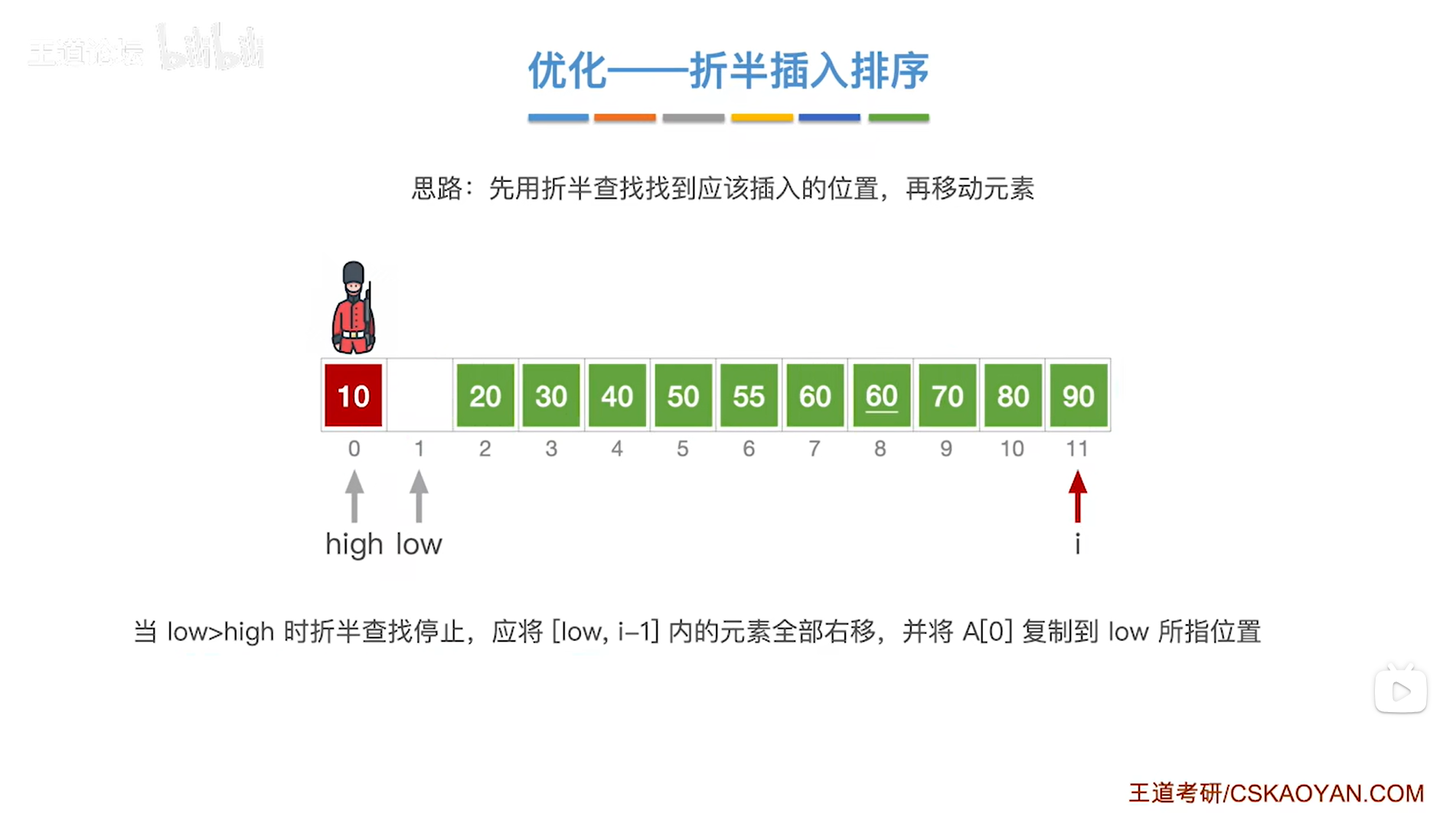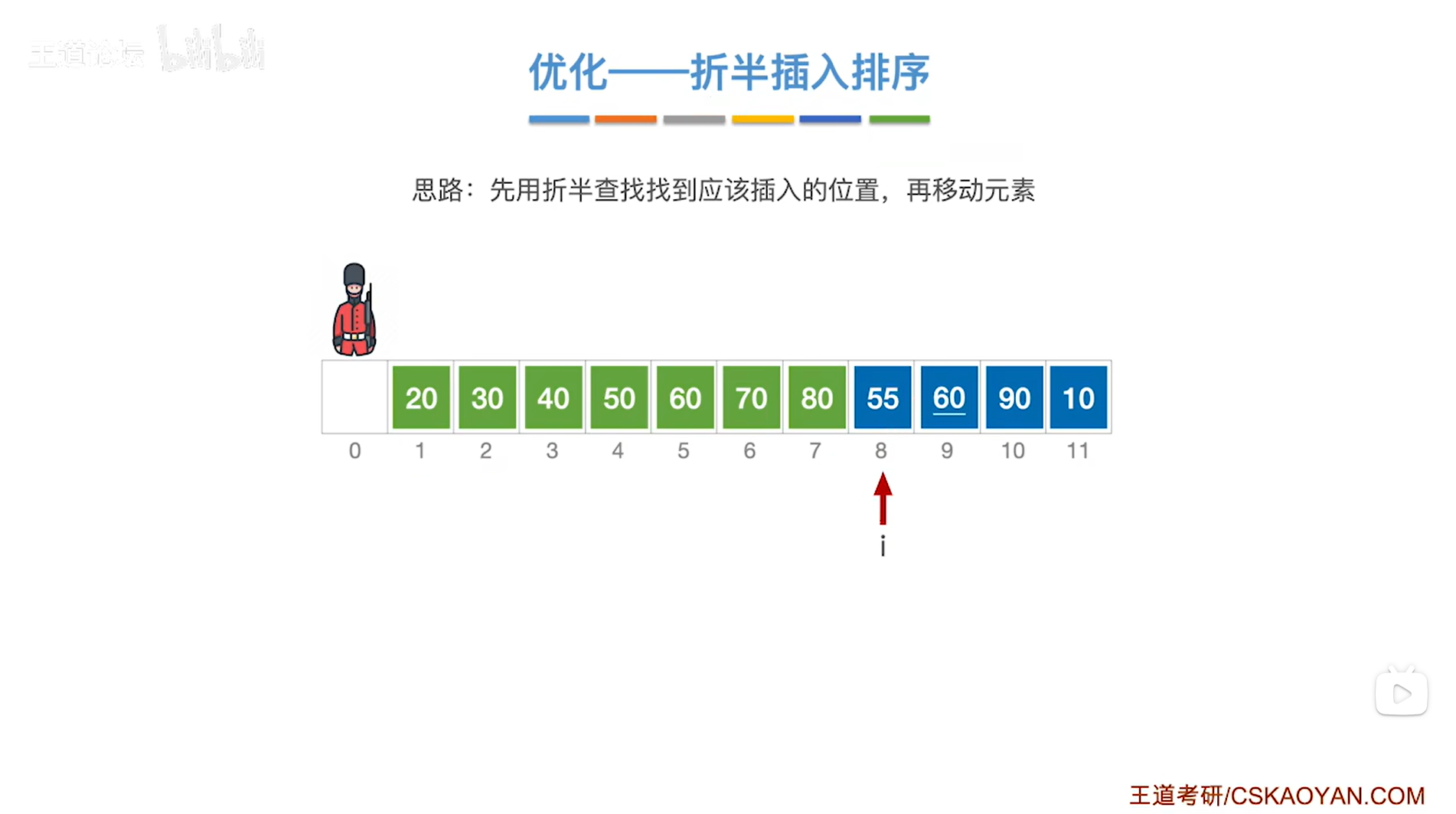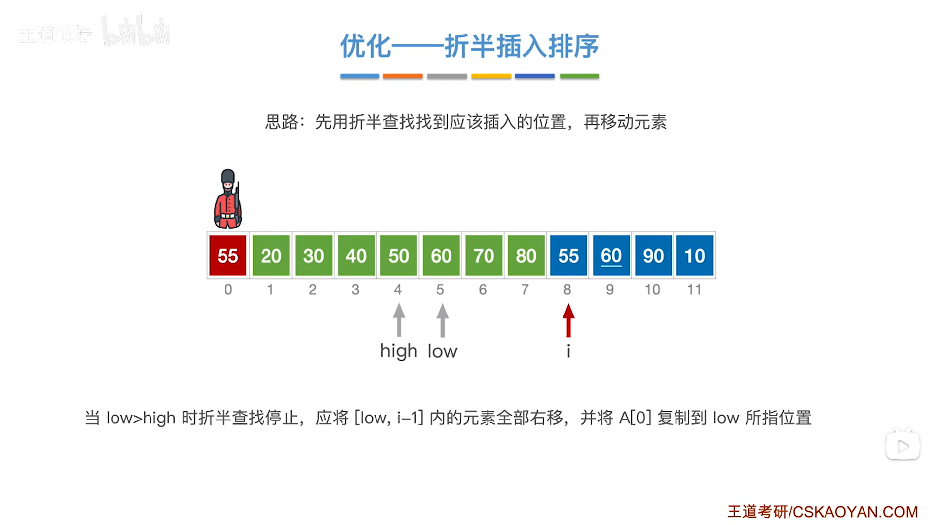 总之,在插入排序中,确定当前处理的元素应该插入的位置的时候,由于该元素前面的序列已经是有序的状态,所以可以使用折半查找的方式来更快的确定应插入的位置,