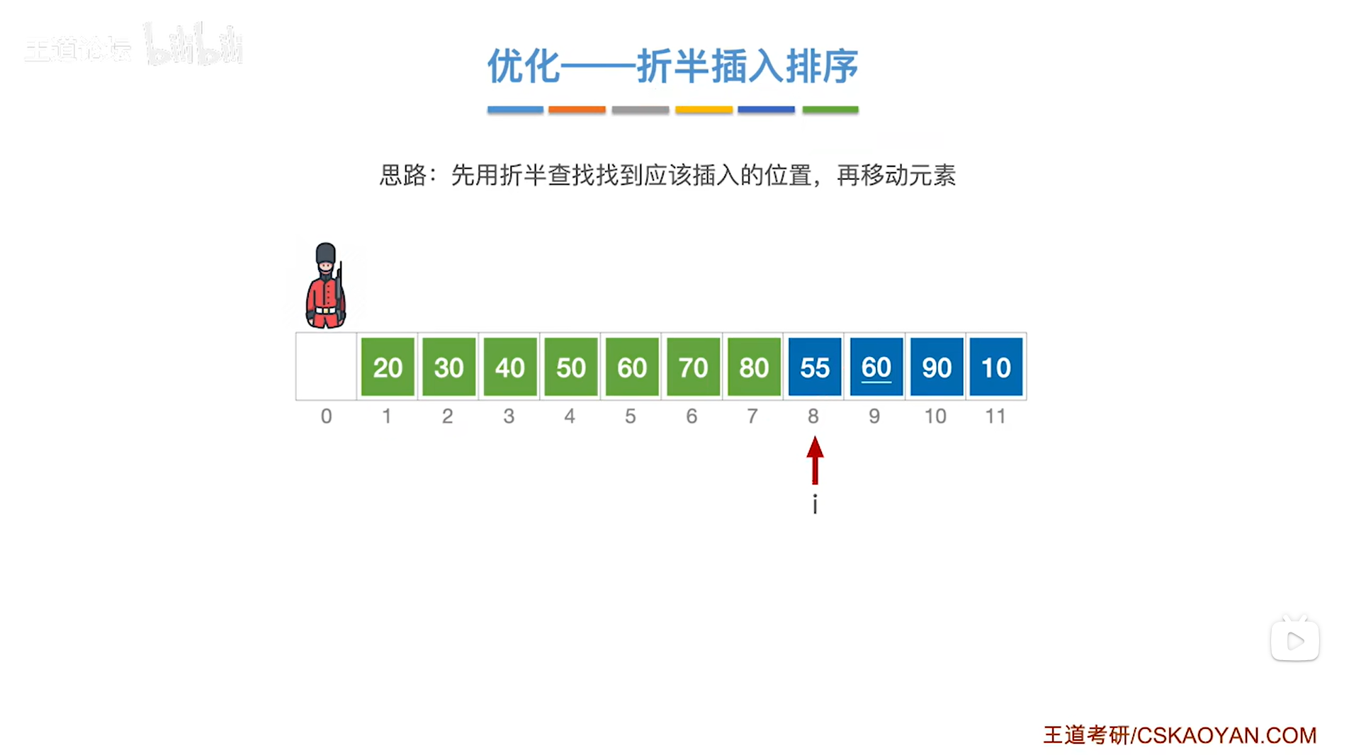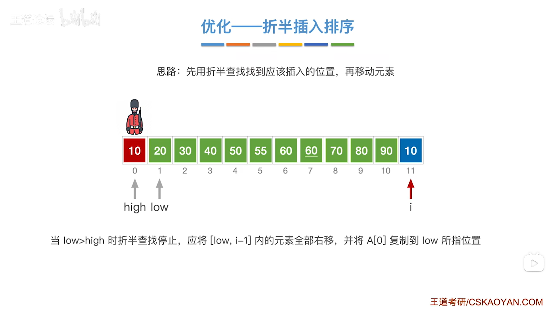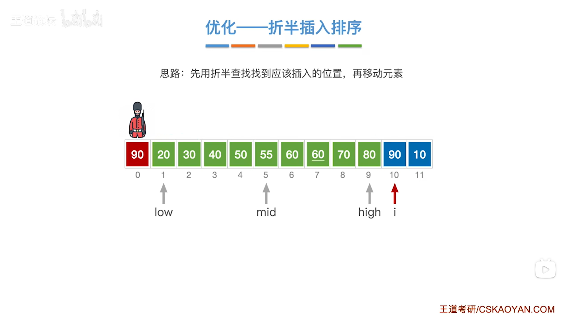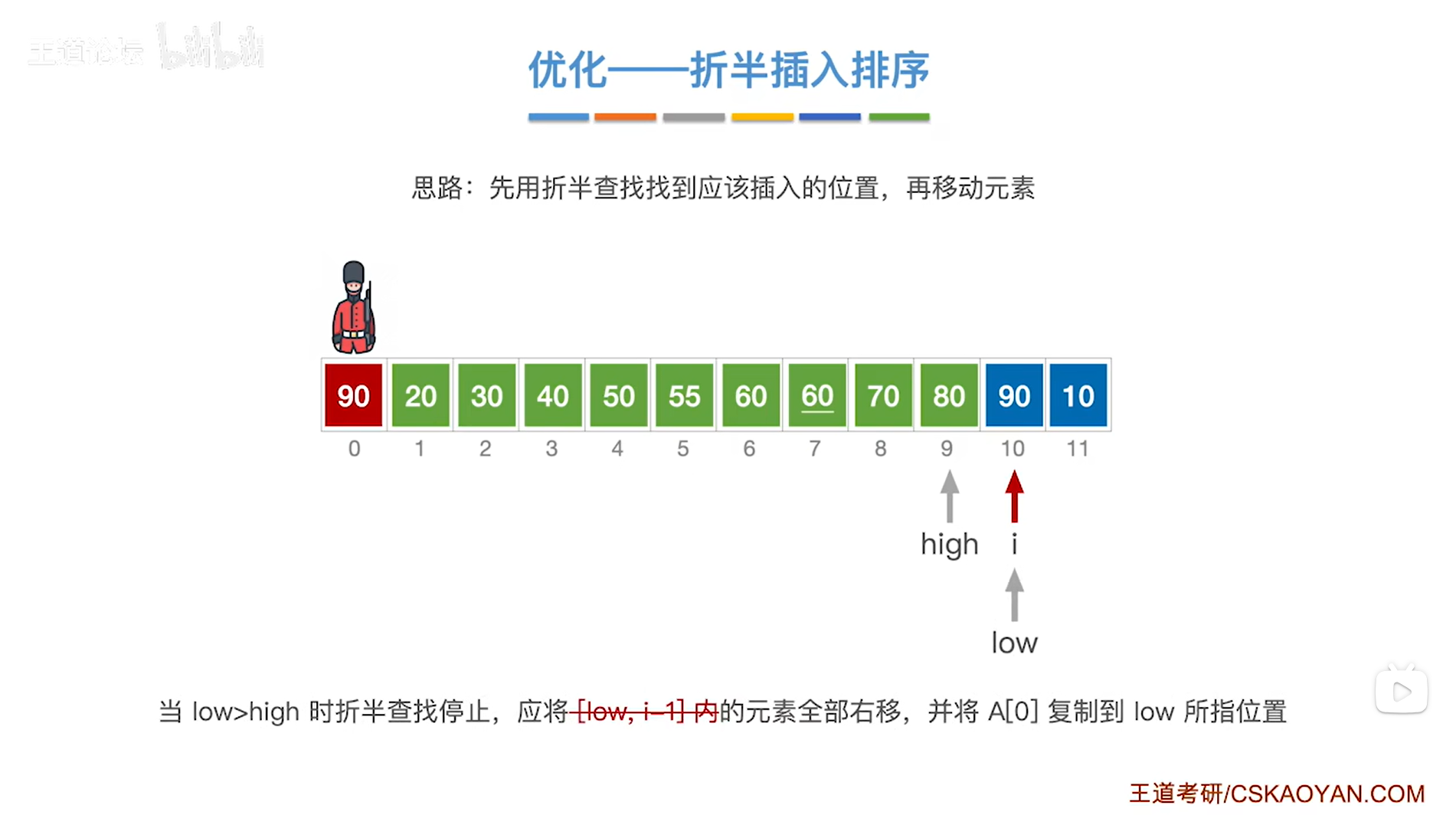 总之,在插入排序中,确定当前处理的元素应该插入的位置的时候,由于该元素前面的序列已经是有序的状态,所以可以使用折半查找的方式来更快的确定应插入的位置,