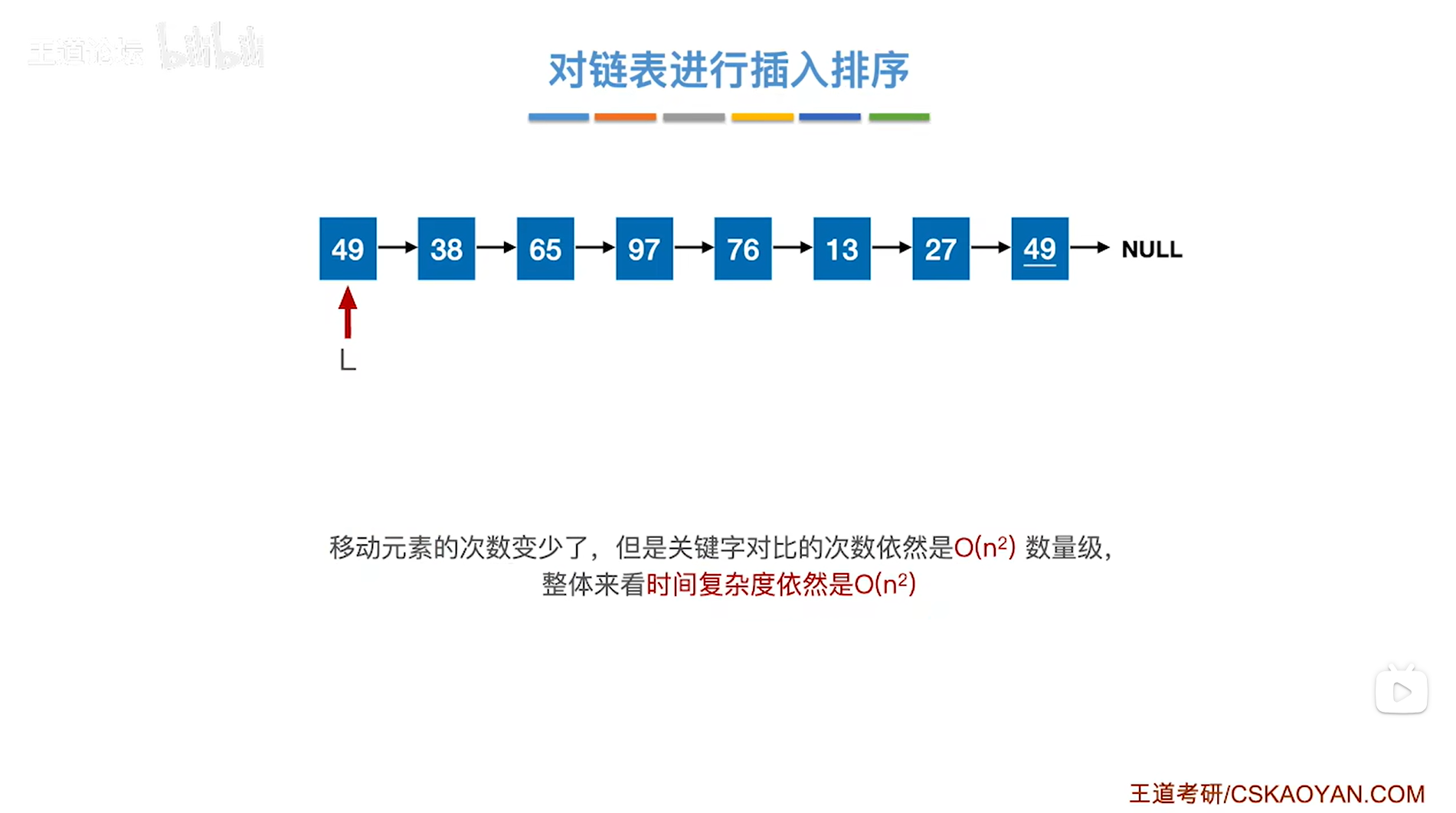 3.参与插入排序的元素采用链式存储的时间复杂度: