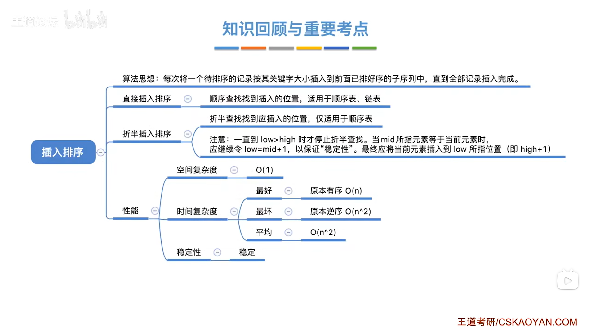 如果参与插入排序的元素基于链式存储,那么查找当前处理的元素应插入的位置只可以用顺序查找,不可以用折半查找,因为链表不具备随机存储的特性即链表中的元素没有索引这个概念,就无法确定折半查找范围。
