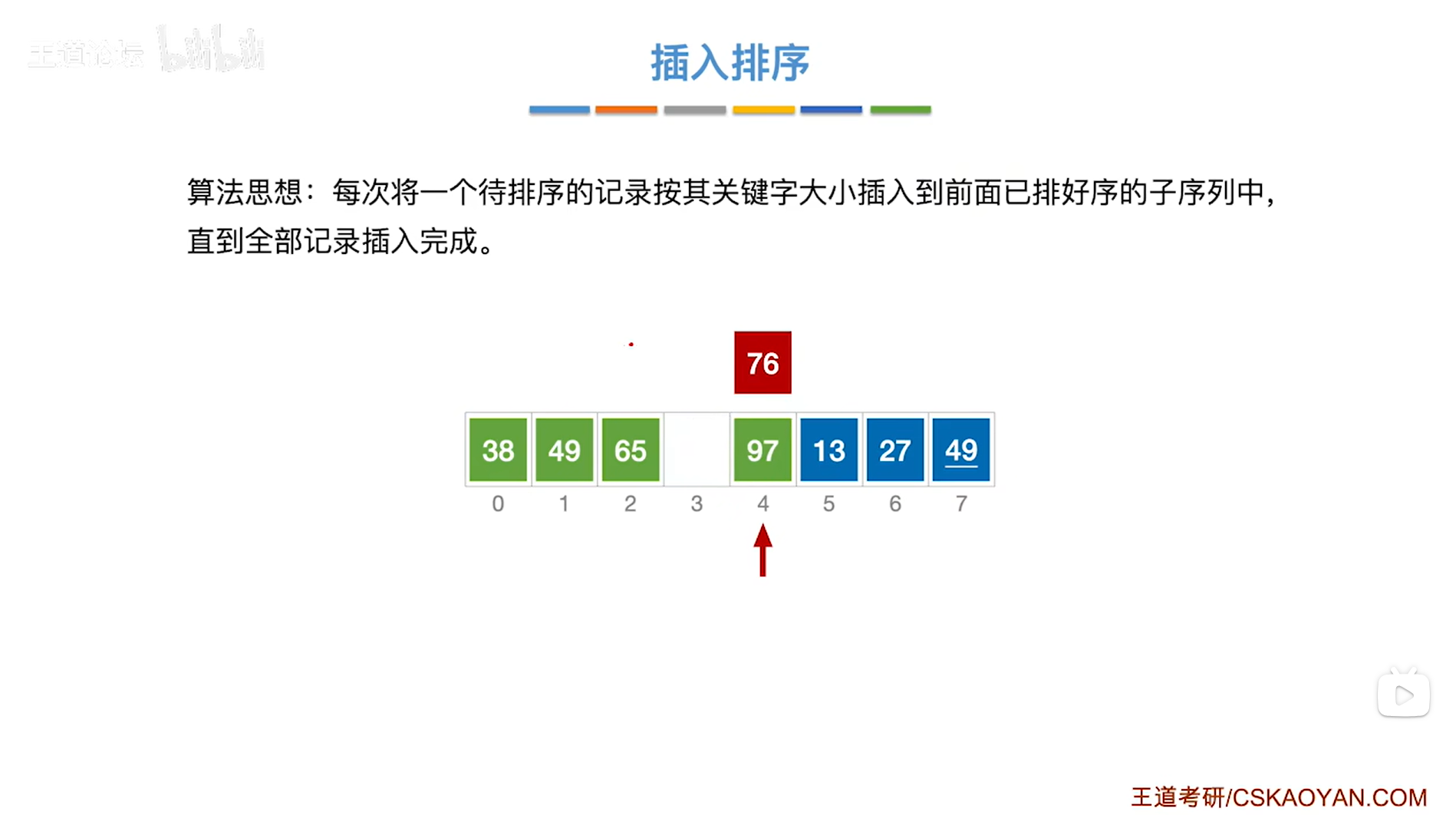 76需要与76前面已经排好序的元素依次进行对比,把比76大的元素都依次后移,