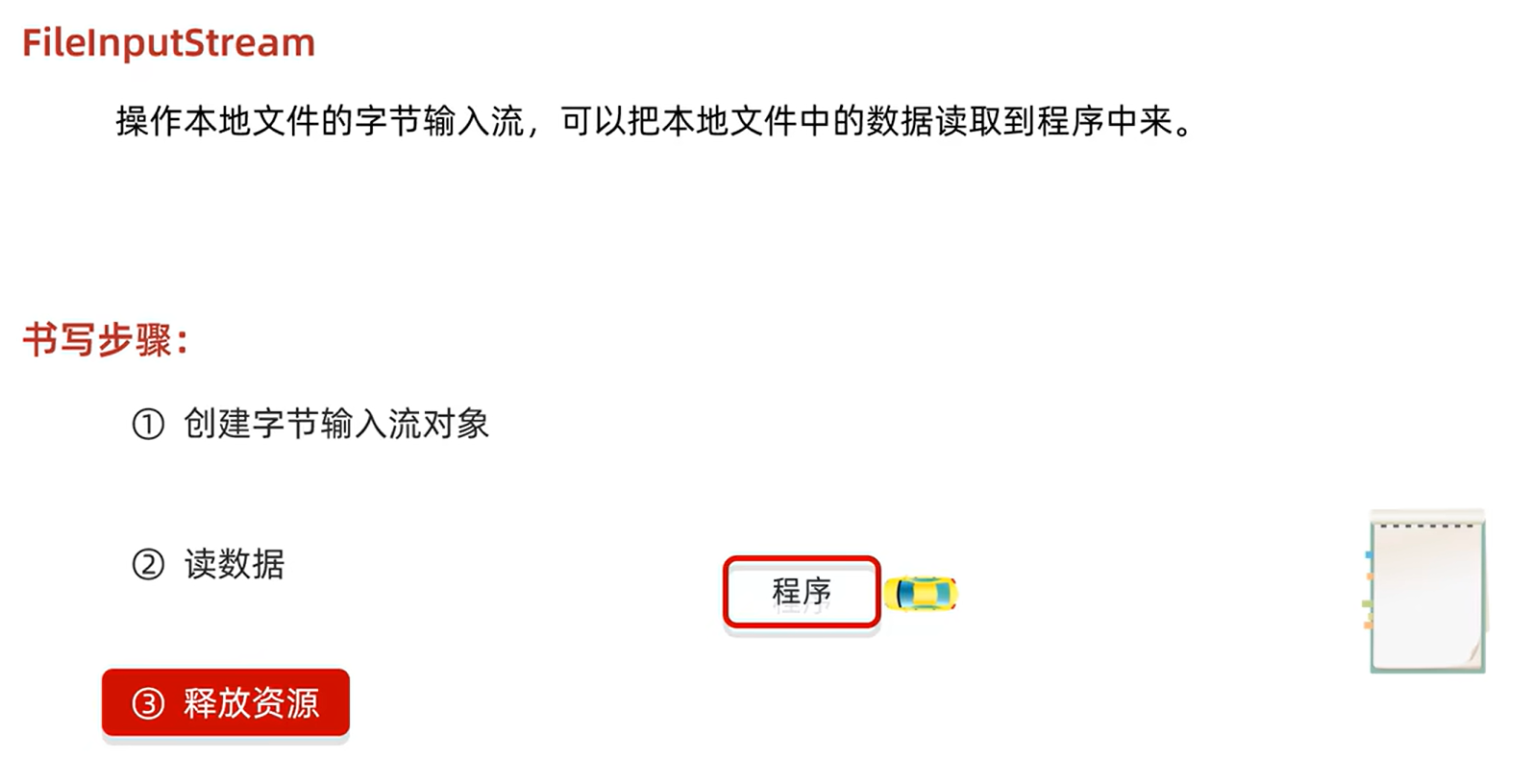 第一步:创建字节输入流对象,该对象一旦创建完毕之后,程序与本地文件之间就好比有了一条传输数据的"通道"