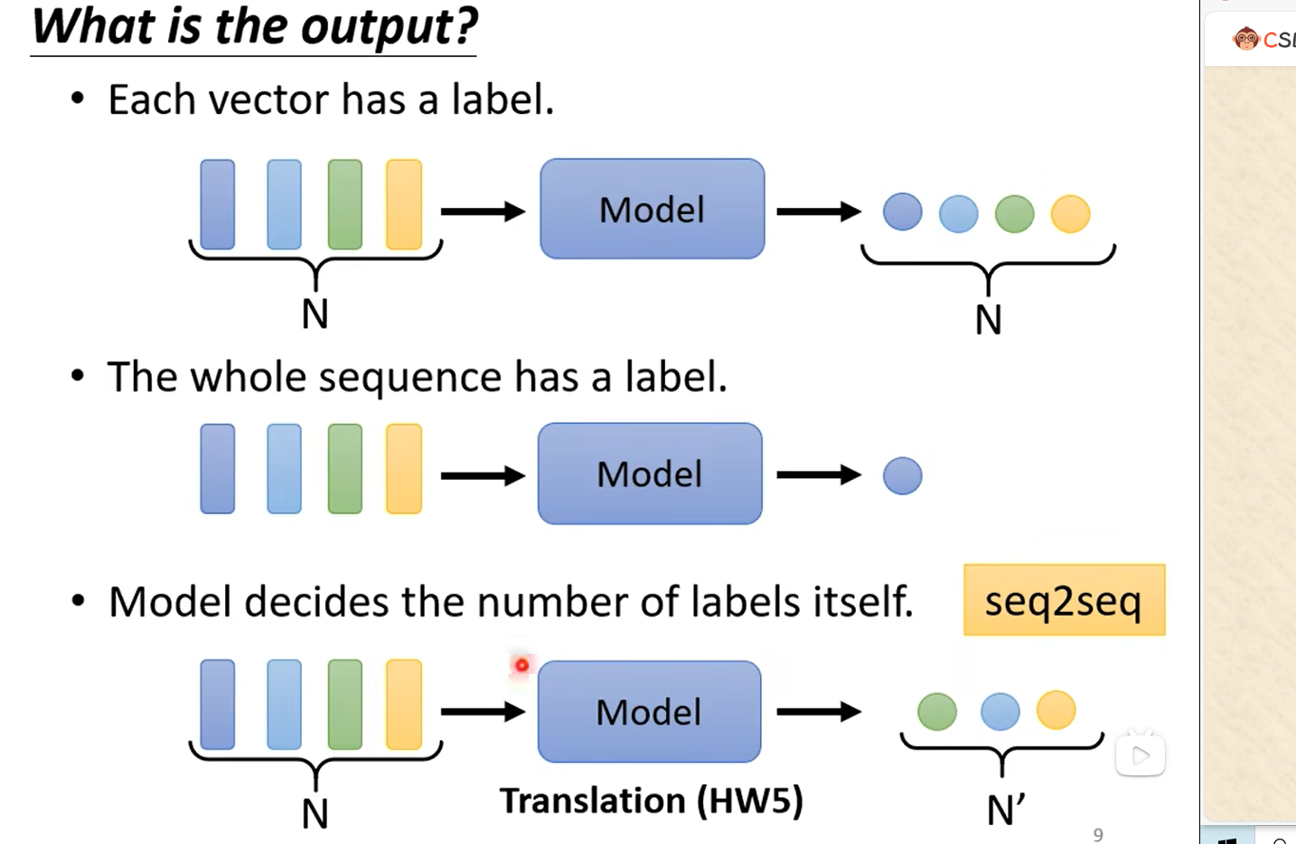 输出可以是每个vector都产生个对应的label,即N to N。如:在社交网络中,推荐某个用户商品(这个用户可能会买或者不买);