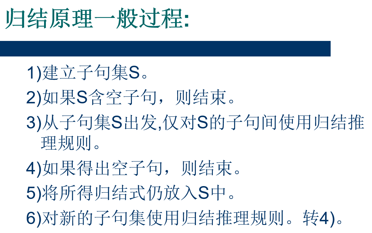 b.归结原理:(改进Herbrand定理,归结原理的本质思想是检查子句集S是否包含一个空子句□)